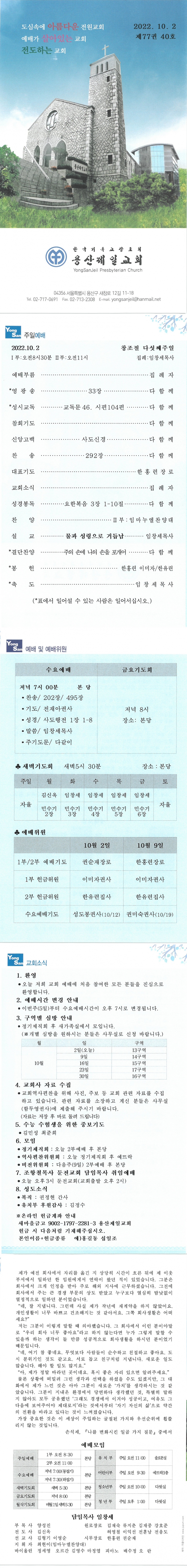 Á¦¸ñ 2022³â 10¿ù 2ÀÏ Ã¢Á¶Àý´Ù¼¸Â°ÁÖÀÏ À̸§ ¿ë»êÁ¦Àϱ³È¸ (yongsan)