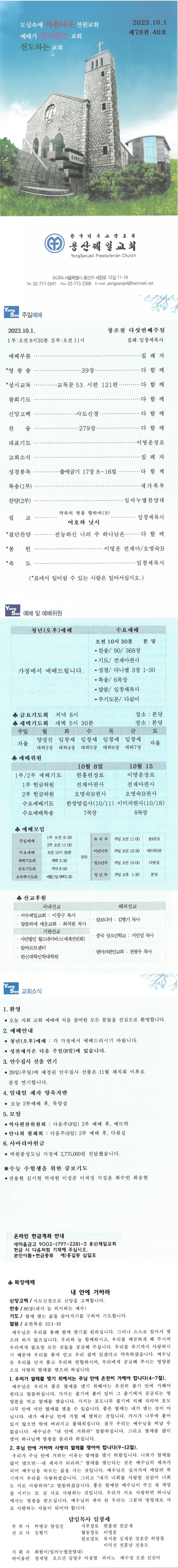 68 2023³â 9¿ù 17ÀÏ Ã¢Á¶Àý ¼¼¹øÂ°ÁÖÀÏ 2023-09-16