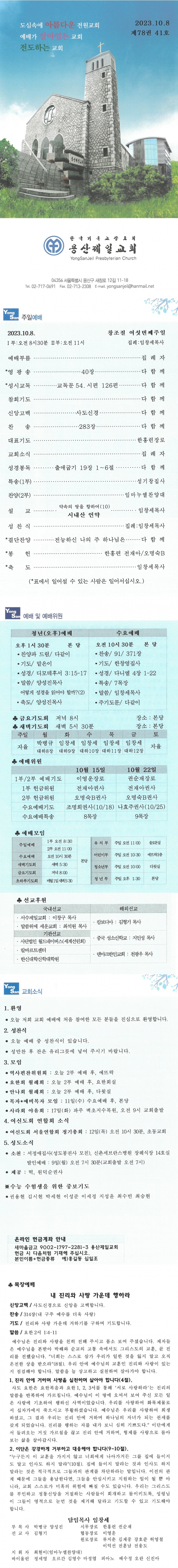 Á¦¸ñ 2023³â 10¿ù 8ÀÏ Ã¢Á¶Àý ¿©¼¸¹øÂ°ÁÖÀÏ À̸§ ¿ë»êÁ¦Àϱ³È¸ (yongsan)