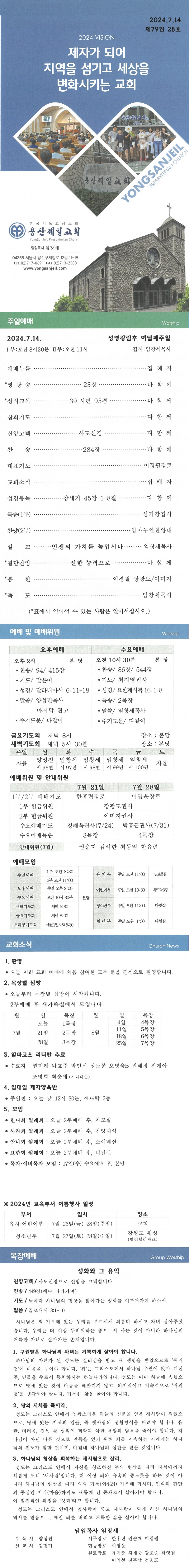 Á¦¸ñ 2024³â 7¿ù 14ÀÏ ¼º·É°­¸²ÈÄ ¿©´ü°ÁÖÀÏ À̸§ ¿ë»êÁ¦Àϱ³È¸ (yongsan)