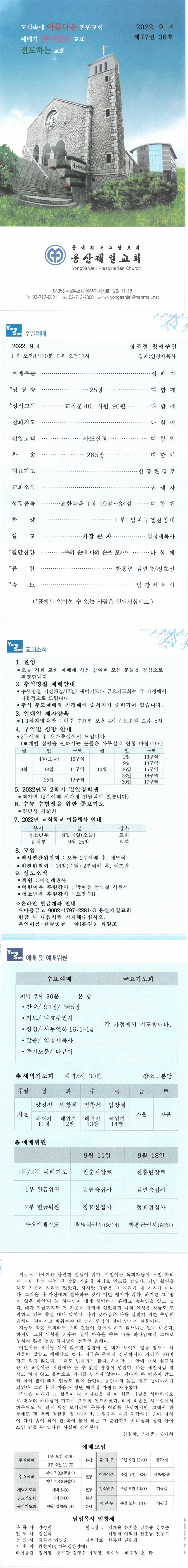 Á¦¸ñ 2022³â 9¿ù 4ÀÏ Ã¢Á¶Àý ù°ÁÖÀÏ À̸§ ¿ë»êÁ¦Àϱ³È¸ (yongsan)