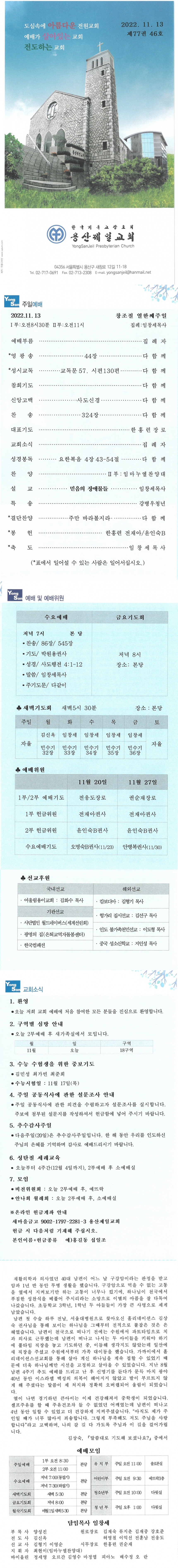 Á¦¸ñ 2022³â 11¿ù 13ÀÏ Ã¢Á¶Àý ¿­ÇѰÁÖÀÏ À̸§ ¿ë»êÁ¦Àϱ³È¸ (yongsan)