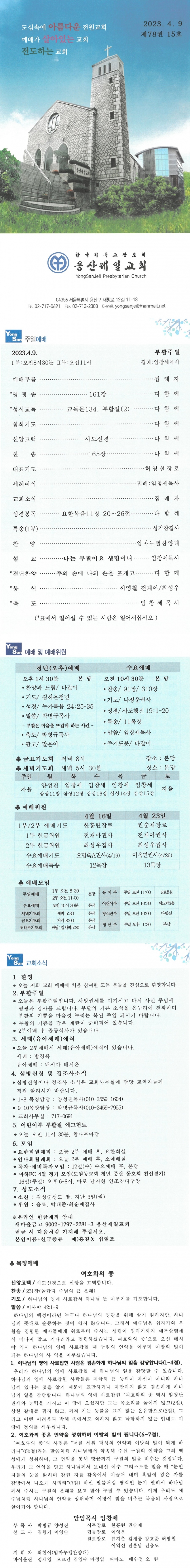 Á¦¸ñ 2023³â 4¿ù 9ÀÏ ºÎȰÁÖÀÏ À̸§ ¿ë»êÁ¦Àϱ³È¸ (yongsan)